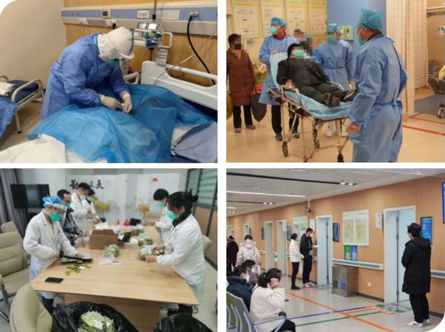 EICU金荣飞39℃还在急诊值班,王桂杰主动报名参加医院新冠重症救治队,ICU梅婉雯、宴倩、李玉卓发热39℃以上,全身酸痛、乏力,仍在坚持值班收治危重患者。换药室张丽霞带病坚持上岗,心血管内科吴雁鸣主任拖着病躯为心梗患者急诊手术,神经内科刘源主任烧一退就来医院上班,内分泌科焦雪花主任自己住院还坚持给病人查房,泌尿外科陈建春、曹志骏忍着头痛给患者手术, 消化科金颖主任自己感染了新冠,一天都没休息,坚持上班……