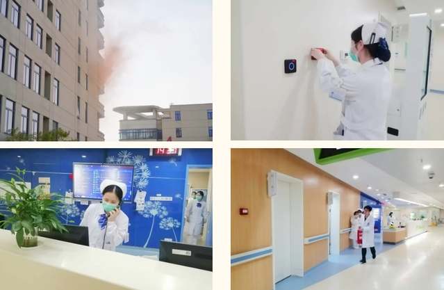 医务人员立即进行应急处置:按下消防手报,并电话通知消控室现场火灾情况,科室医生利用灭火器尽可能控制火势。