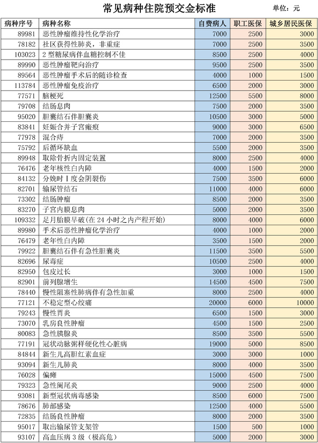 为贯彻落实江苏省卫生健康委《关于做好规范公立医疗机构预交金管理实施工作的通知》(苏卫财务【2025】19号)精神,现将我院常见病种住院预交金进行公示: