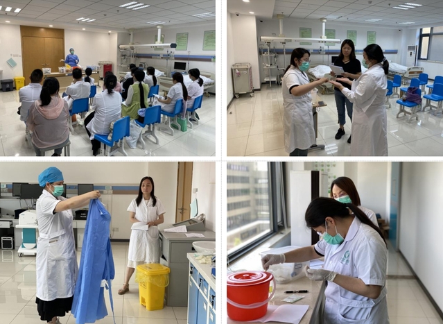 本期培训班安排了重点科室临床实践活动理论培训及考核:从个人防护衣穿脱、含氯消毒剂配制、手消毒及物体表面消毒效果监测采样、环境沉降法空气采样、软式内镜消毒效果监测采样等方面进行了培训;并在培训基地进行了演练与现场指导,培训结束后实践考核。