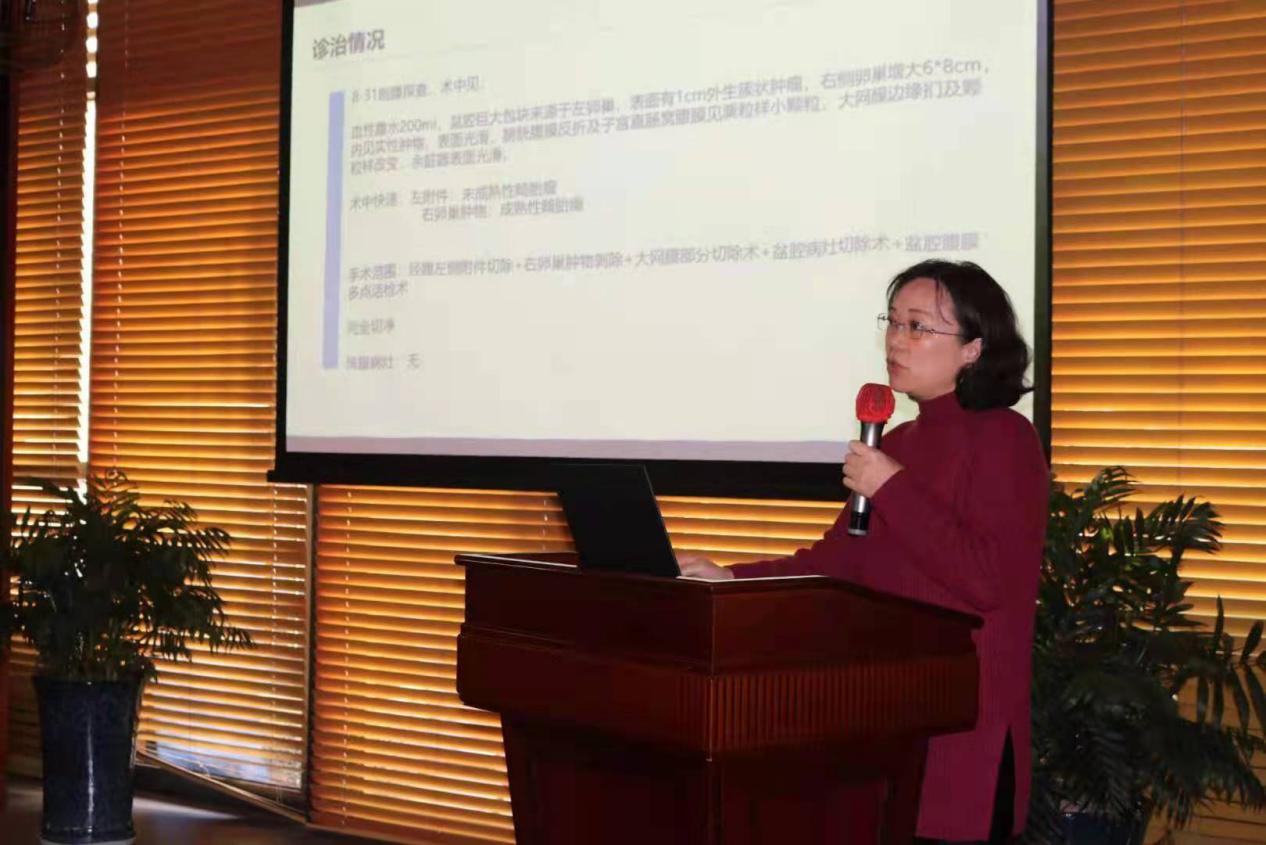 大会还邀请了三位教授进行了病例讨论,首先苏州市立医院本部侯顺玉教授给大家分享了一例罕见病例卵巢未成熟性畸胎瘤,通过病例的介绍,并带大家学习了卵巢恶性生殖细胞肿瘤的诊治指南,她强调卵巢生殖细胞肿瘤高发年轻妇女,对于有生育要求的,可行保留生育功能的全面分期手术,术后如需化疗,可进行化疗前的卵巢保护,尽量保留她们的生育功能,精彩的病例汇报给大家留下了深刻的印象。