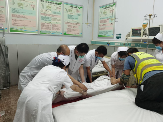 天气很热,气温将近40℃,是我来府谷后最热的一天,跟当地医生聊起,他们也很少遇到这种天气。中午在宿舍吃饭时,急诊科王主任打电话说急诊来了个重症中暑,体温41℃,于是我马上赶了过去。查体后发现患者意识浅昏迷,血压低,如果不及时进行救治,很可能出现严重的后果,甚至威胁患者的生命。于是,我们立即对患者进行补液扩容、降温,冷敷手臂、头部、腹股沟等部位,同时使用酒精反复擦拭身体并用风扇冷却降温。经过半个小时的救治,患者体温逐步下降,生命转危为安。