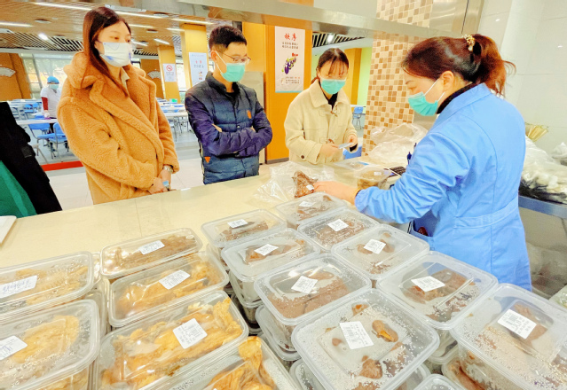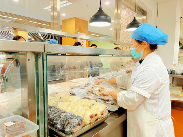 医院为职工精心准备了酱鹅、酱牛肉、爆鱼、狮子头、八宝鸭等十几种美食,所有食材均用心挑选,精心烹制而成,用最朴实的调料,制作最地道的原味鲜香,既干净卫生,又美味可口。既方便了职工,也让大家感受到了医院的关怀和温暖。“我要一份狮子头、一份爆鱼、两只八宝鸭……这些基本都是苏州的特色菜,年夜饭的餐桌上当然少不了这些‘老底子’的味道!”来自骨科的一位护士说道。