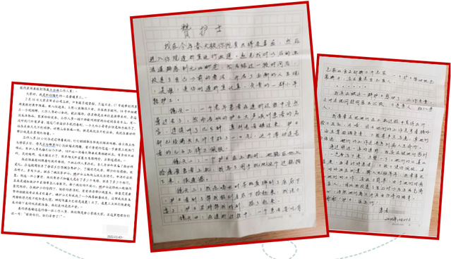 一面面鲜艳的锦旗,一封封情真意切的感谢信,传递的不仅是患者及家属的感激之情,更是对医院服务品质的认可和对医护人员工作的肯定,彰显了医患彼此之间的真诚与和谐,也是对医护人员无私奉献的最好回报!一句“谢谢”让医务人员感到温暖,一次“相遇”,让医患关系的正能量绽放,用心制作的锦旗,用情书写的信件,承载着万分感激,尽显着医患情深。