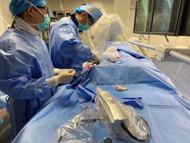 尤其近年来,急性心肌梗死发病率不断攀升,且呈年轻化趋势,急诊处理已成为心血管内科十分重要的组成部分。面对病人猝死的风险,抢救往往是分秒必争、惊心动魄的,也在考验着医生的专业技术能力和应急处理能力。为更好地应对急救急症、保障生命健康,心血管内科已经常态化开展各类介入手术。殷人麟积极参与其中,并开展多项新技术,在急救的手术台上挽救患者生命。