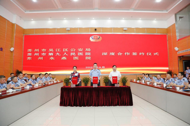 与吴江公安签署“警•医”深度合作协议,全面深化警务人员健康保障服务力度,深入推进“爱警暖警”“爱医护医”浓郁氛围,创新合作机制全力保障人民群众生命财产安全。