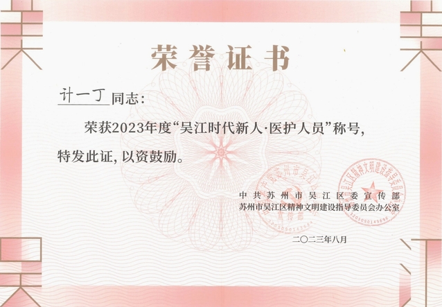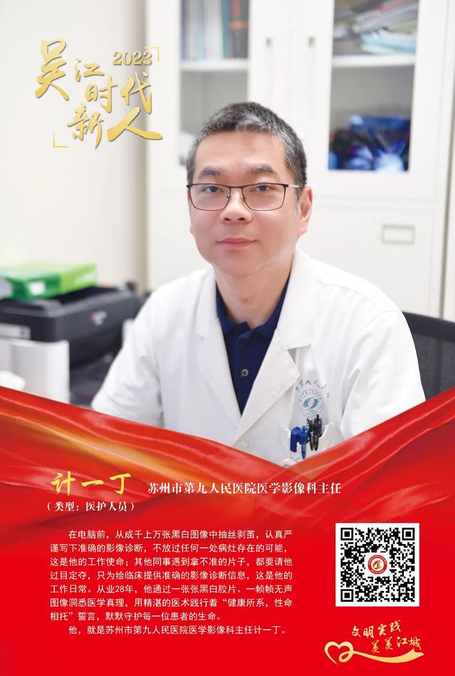 在个人擅长的领域,计一丁更是要求自己做到精益求精。计一丁擅长胸腹部及心血管疾病影像诊断。多年来,他先后以第一作者或通讯作者发表省级以上专业论文20多篇,其中SCI论文6篇,主持科研课题4项,其中苏州市级以上科研课题2项;获苏州市新技术引进二等奖1项、苏州市医学会科技进步三等奖1项、吴江区科技进步三等奖2项。2020年,计一丁参与的“双源CT低剂量成像技术在临床个体化检查中的应用”获省卫健委医学引进新技术二等奖,这也是我区首次获得省级医学科技奖,为全区医疗事业发展作出了积极贡献。