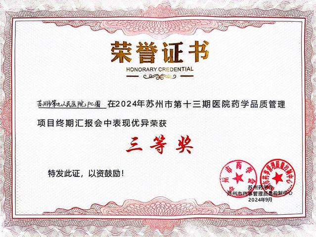 近日,在苏州市第十三期医院药学品质管理项目终期汇报会中,探花直播 药学部参赛项目“PC圈”通过层层角逐,从全市39个品管圈项目中脱颖而出,荣获赛事三等奖。