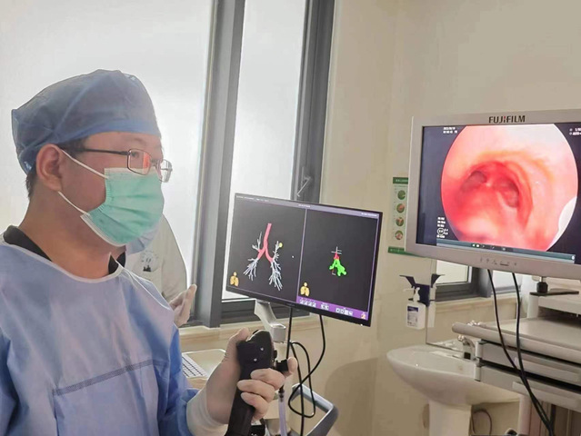 作为介入呼吸病学的**进展,电磁导航支气管镜技术是现代电磁导航技术、虚拟支气管镜和三维CT成像技术相结合的新一代支气管镜检查系统。该系统如同肺部的GPS导航系统,能够建立一条直达肺内病灶的精准诊疗通道,对肺部病变尤其是肺小结节病灶的诊断更准确,与传统诊断方法比较有显著的优势。探花直播 呼吸与危重症医学科副主任董凌云提前将李先生的高分辨率CT图像导入磁导航系统,构建确定了“GPS导航”路径。在麻醉医生的配合下,呼吸与危重症医学科副主任张剑锋利用电磁导航支气管镜诊疗技术,在纵横交错的“支气管交通网”中,按照系统提前规划的“GPS导航”路径,可视化操作支气管镜,精准到达左肺上叶后段结节处“目的地”,成功获取了左肺上叶后段结节的病理活检组织,并给予肺泡灌洗送NGS检测,顺利完成吴江区域内首例“电磁导航支气管镜检查”,开启了吴江地区肺部外周病灶精准诊疗模式。