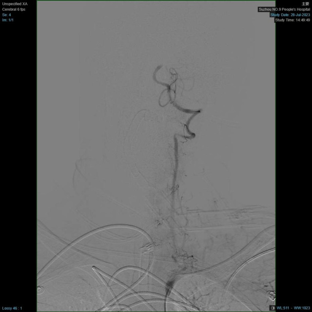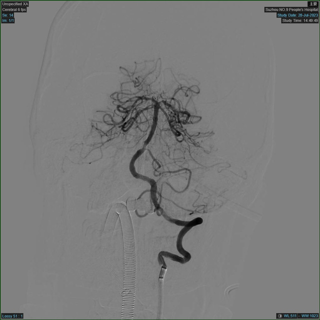 患者在医学影像科完成血管评估后,再次予以查体,评估神经功能缺损评分高达29分。神经内科副主任翟国杰阅片后考虑基底动脉闭塞,立即向家属交代相关情况,排除手术禁忌,签署手术知情同意书,完善所有术前检查,送至介入手术室,急诊介入手术立即进行。