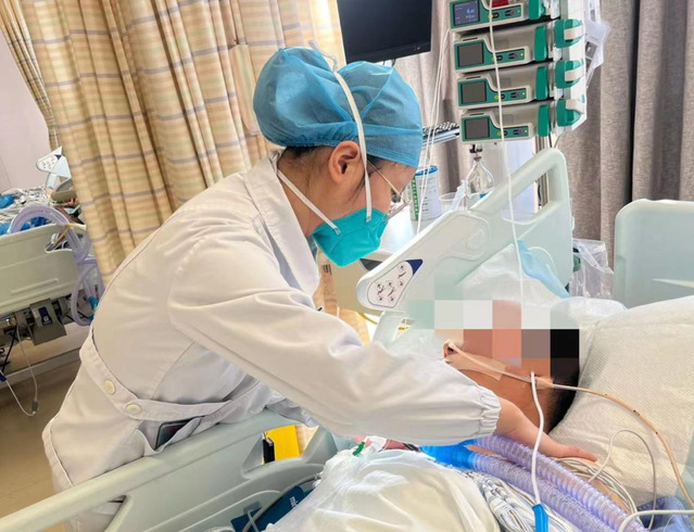 “呼吸机已成功连接”,“患者监测脉氧100%”“患者血压偏高,立即予以控制血压”,虽然已过下班时间,病房里却异常忙碌。好在当晚病人神志就有了好转,在医护团队密切合作下,跨过一道道难关:“高灌关”“水肿关”“感染关”,在第三天恢复清醒,右侧肢体可自主活动,左侧肢体偏瘫也有了很大改善。患者对医护人员竖起了大拇指,并艰难地说出了“谢谢”二字。