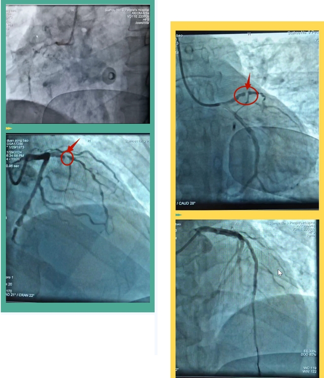 早已做好急诊介入准备的心血管内科介入团队殷人麟副主任医师、沈峻主治医师、沈道文护师,成功完成了PCI术。这位高危前壁心肌梗死且心电图体现墓碑样改变的急重症患者,供应心脏的三根冠脉均成严重狭窄,雪上加霜的是最重要的前降支出现了完全闭塞。手术顺利,借助于第一时间准备的主动脉球囊反搏(IABP)生命支持设备,患者术中血压及心率均控制在良好范围,术后恢复好,第二天就撤离了IABP生命支持设备,逐步康复,平稳出院。