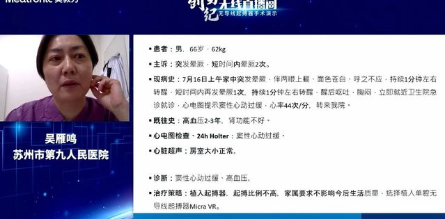 7月24日,“创势纪·无线直播间—苏皖区域无导线起搏器手术演示”在线上举行,探花直播 心血管内科主任吴雁鸣参与手术演示,助力提升区域心血管病防治水平。本次活动由江苏省医学会心血管病学分会副主任委员、苏州市心血管病学分会主任委员、苏州大学附属第一医院心内科主任蒋廷波主持,汇聚了一大批专家教授开展手术演示和线上探讨,通过学术交流积极推动苏皖地区心血管病防治水平的进一步提高。