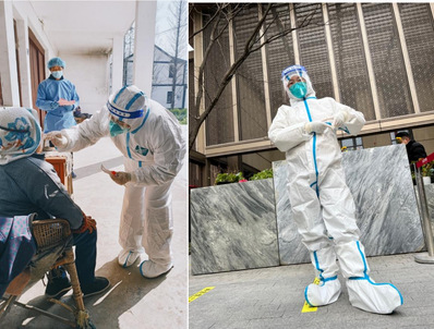 左边是我科的准新娘徐医生,疫情伊始就跟着核酸大部队奔波在吴江的各个角落,前日还奔赴昆山支援。原定于四月举办婚礼的她仍旧将喜帖发给了我们,她说:提前分享喜悦,一切都会好的。俞玲芳医生和她的警察丈夫也值得一提,黎警官自2月13日晚上到岗后便开始从事流调工作,就没有回过家,而俞医生则是随时出发完成核酸任务,坚守在疫情防控的“第一线”,两人只得空时通过微信视频简短诉思念。问起俞玲芳医生,她说:像我们这样的家庭有很多,舍小家为大家,每个人都在努力,幸福就在风雨后。
