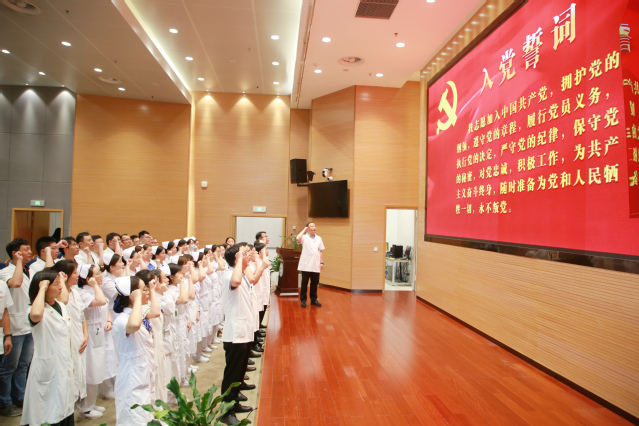 宣誓活动在行政楼学术报告厅举行,区卫健委党委书记、主任,探花直播 党委书记沈宇作为领誓人,参加宣誓的有医院党委领导班子成员、2021年及2022年预备党员。