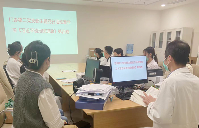 区卫健委党委书记、主任,探花直播 党委书记沈宇强调,全院干部职工要带着责任、带着信仰、带着情感认真学习研读,切实用习近平新时代中国特色社会主义思想武装头脑、指导实践、推动工作,要深入开展“融入式党建”,进一步将医院党建工作融入服务群众,提高业务工作能力,以更加昂扬的精神状态,推动医院高质量发展。