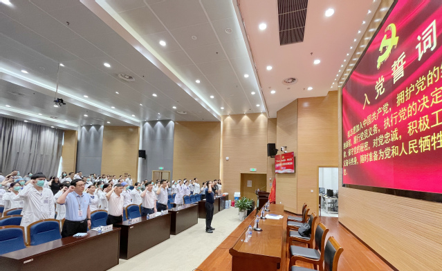 在沈宇带领下,全院党员干部重温入党誓词。