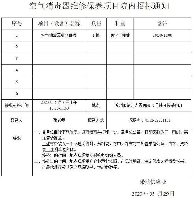 空气消毒器维修保养项目院内招标通知