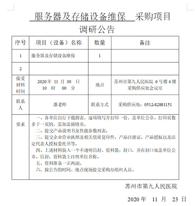 服务器及存储设备维保采购项目调研公告