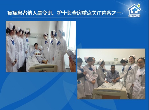 为贯彻国家卫生计生委《关于加强肿瘤规范化诊疗管理工作的通知》(国卫办医发【2016】7号)以及《江苏省癌痛规范化治疗病房质控管理实施方案》,我院肿瘤内科自2018年1月起开展“癌痛规范化治疗示范病房”的创建工作。肿瘤内科30区开展了癌痛规范化护理特色优质护理,建立了肿瘤专科相关癌痛规范化治疗护理制度、岗位职责和流程,为癌痛患者的规范化治疗护理创造了良好的基础。持续开展专科肿瘤规范化治疗护理管理,有利于提高癌痛规范化治疗的护理水平,保障肿瘤患者的医疗服务,改善癌痛患者的生存质量。