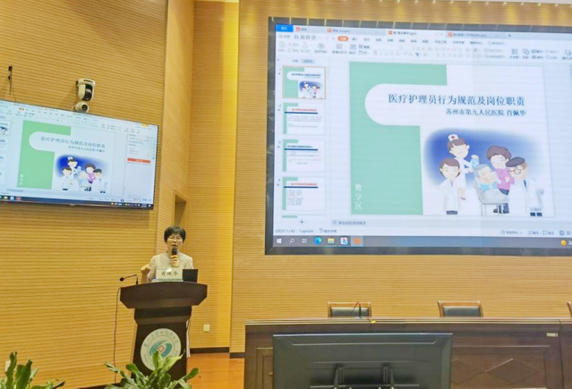 探花直播 护理部主任肖佩华希望学员们以本次培训为契机,坚持“以患者为中心”的服务宗旨,通过系统化、专业化培训,不断提升综合职业素养和专业能力,树立良好的职业形象,为患者提供安全、优质、有温度的服务。肖佩华为学员们开启了培训班第一讲,主题是《医疗护理员行为规范和岗位职责》。
