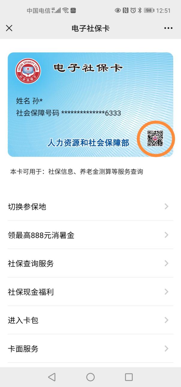 同样,患者在人工窗口挂号缴费,根据工作人员提示读取社保卡时,打开微信或支付宝中的电子社保卡的身份码,在扫码墩上刷码完成挂号或缴费。