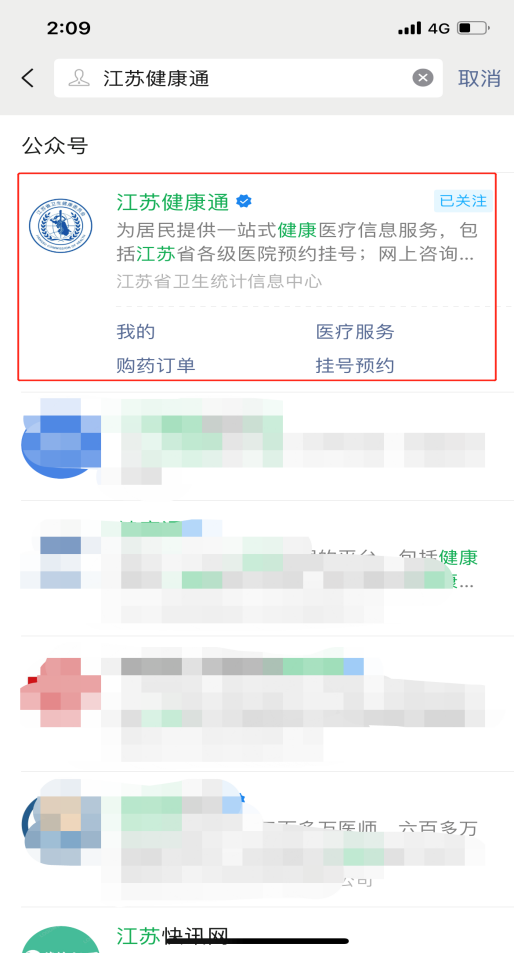 1.关注探花直播 微信公众号或江苏健康通公众号。