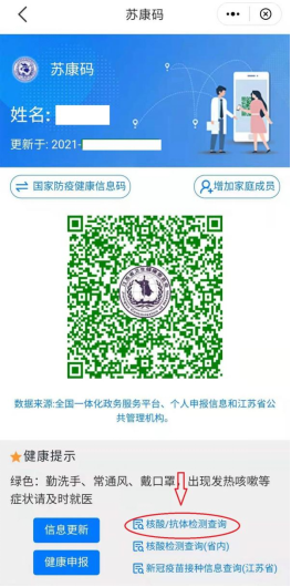 1、苏周到app(建议**途径):进入苏周到app,“更多服务”——“医疗健康”——“核酸检测结果查询”;
