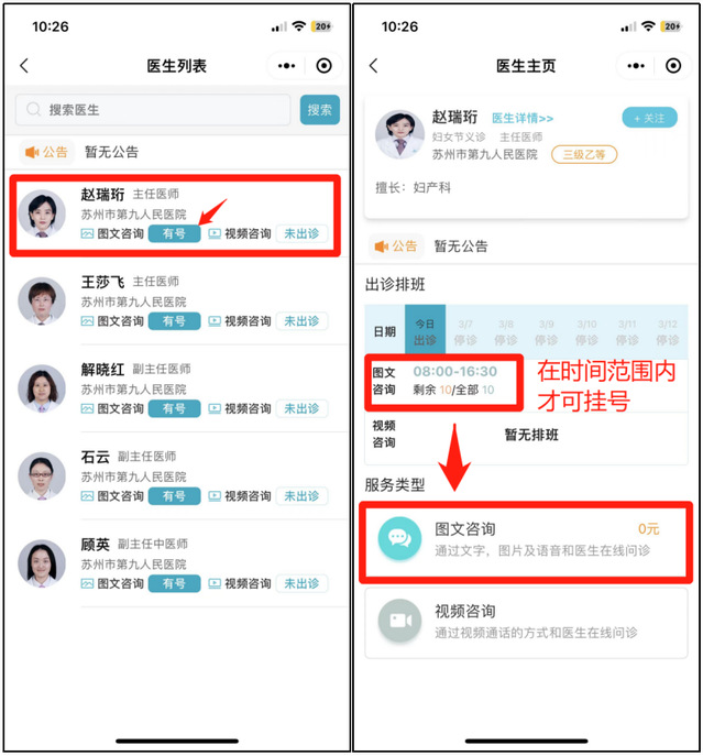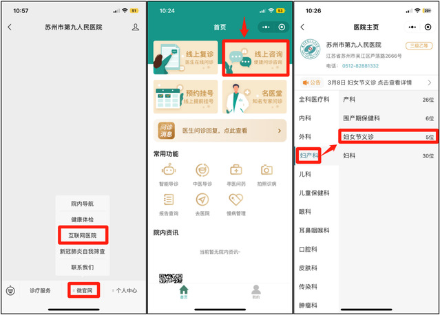 微信搜索“探花直播 ”公众号关注并打开选择“微官网”点击“互联网医院”选择“线上咨询”选择妇产科---妇女节义诊-- 医生(显示有号源)--图文咨询--填写信息提交问诊--等待医生接诊。