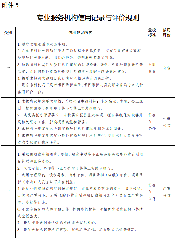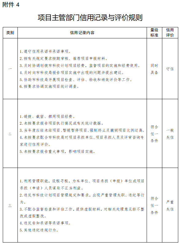 (六)其他。对市科技计划项目相关责任主体在实施和参与项目过程中与项目相关的其它信用情况进行记录和评价。