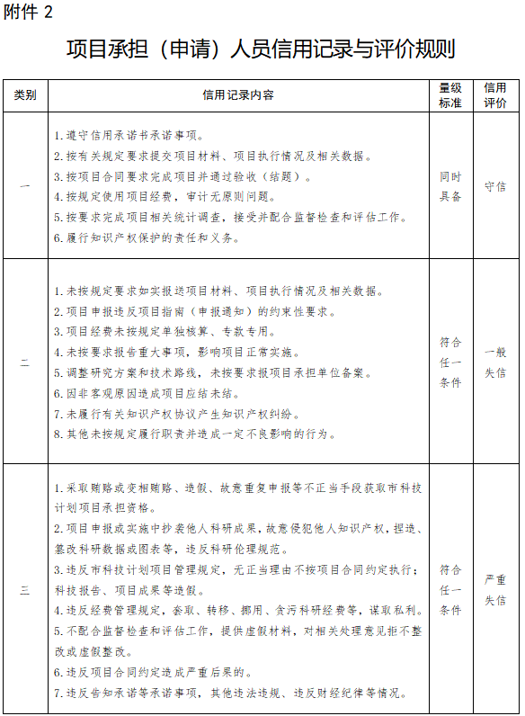 第十条 失信行为是指相关责任主体在参与市科技计划项目申报、立项、实施、管理、验收和咨询评审评估等全过程中,存在违反市科技计划项目管理规定和要求、违反项目合同、违反科研伦理、违反职业道德,以及违法违纪的行为。失信行为分为一般失信行为和严重失信行为。