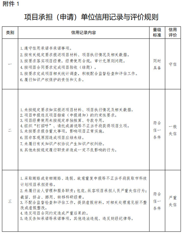 (二)立项管理。对项目申请单位及申请人员、评审咨询专家、项目主管部门、专业服务机构在项目的立项咨询、评审、论证和现场考察等工作中的信用情况进行记录和评价。