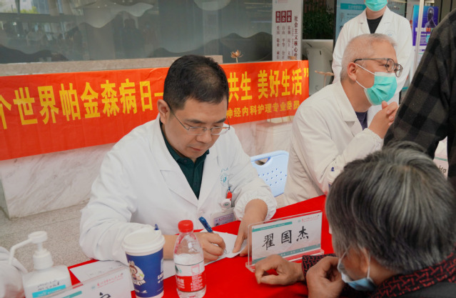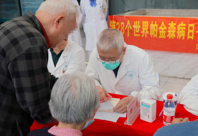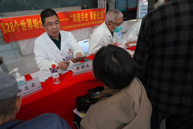 在第28个“世界帕金森日”来临之际,探花直播 神经内科为普及帕金森病知识,增强老年人自我健康管理意识,努力提高人民群众健康素养水平,在医院门诊一楼大厅开展义诊活动。今年的主题是“和谐共生,美好生活”。苏州市立医院柳荫主任、探花直播 神经内科徐元主任、翟国杰副主任等医护专家团队参加义诊。
