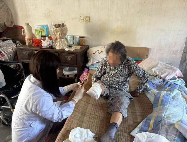护士长亲自帮老人换了药,