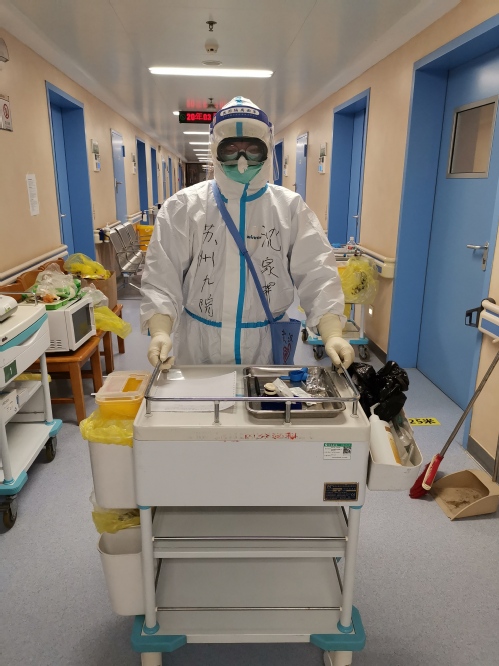 我们是黑夜中的一盏明灯,照亮患者们前行的道路,也许道路很坎坷、很曲折,但我们始终愿以温柔善待。在厚重的防护服和严密的口罩下,我们要完成大量的治疗和护理操作,让作为男生的我也感到非常疲惫,但队伍中的护理姐妹们,巾帼不让须眉,以柔弱的身躯抗起了队伍中的大梁,她们真不愧是现实生活中的花木兰,勇往前行,敢于同新冠病毒斗争。舍小家,为大家,不负南丁格尔誓言,我也以同她们并肩作战而感到自豪和光荣。