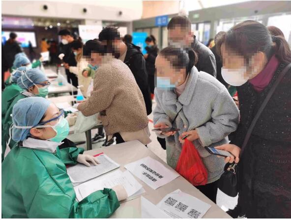 随着疫情的发展,一项项新的服务举措接踵而来,门诊预检分诊工作进入连轴转的状态。2月4日,九院根据国家防控要求开始实行实名制刷卡登记入院;2月25日,随着复工来临,门急诊量迅速攀升,为避免聚集拥挤,减少交叉感染,九院在吴江区率先推行分时段预约诊疗,要求就诊患者及家属需正确佩戴口罩、来院时扫描“苏城码(苏康码)”、严格执行“一患一诊室”诊疗、相互之间需保持“1米距离”……