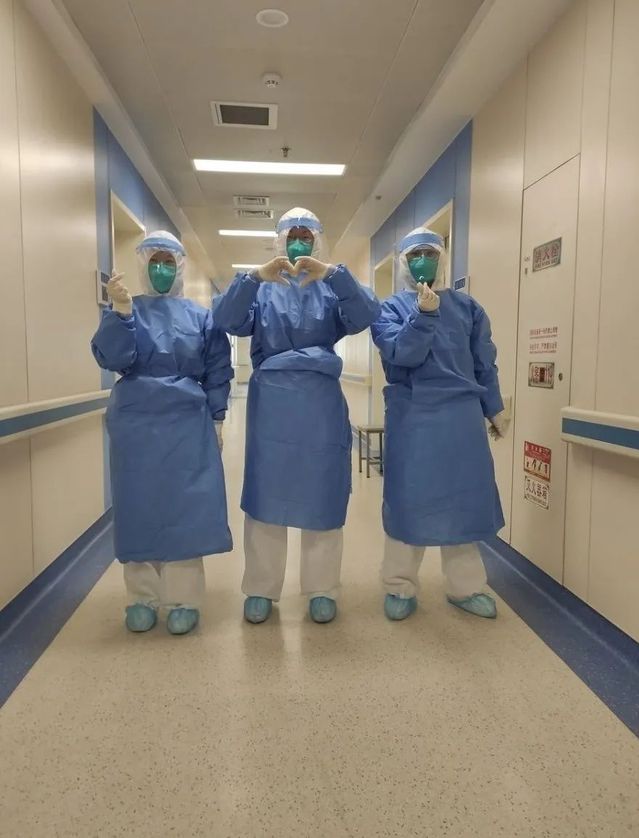 隔离病房在特殊时期成立,目前进入隔离病房的护理人员达到50余人次,团队来自不同科室,她们勇挑重担,虽然家中都有年幼的孩子,但是疫情当前,没有一个人推辞。因为吃住都在一起,护士们的同事情变成了战友情,大家相互帮助相互关心,虽然防护设施很厚重,但是并没有增加他们之间的距离,每天战友们互相帮助穿戴和检查防护衣,一起完成比较难和危险的操作,特殊的战场上,他们并肩奋斗,只为迎接胜利的到来。