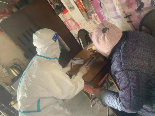 3月29日,我刚结束樾碧花园防疫任务便马不停蹄来到金家坝禾田村,这里村民人数多、居民年龄大、分布广泛,增加了疫情防控的复杂性和困难性。每天,我都骑着电动三轮车上门核酸采样,除了采样外,还要兼顾居民慢病管理和突发疾病。村里绝大多数都是老人,身体基础条件差,很多患有心脏病、哮喘、慢性胃肠炎等疾病。有一次,一位老太太突然腹痛,经查后,发现是慢性阑尾炎。经过治疗,患者的腹痛得到好转。