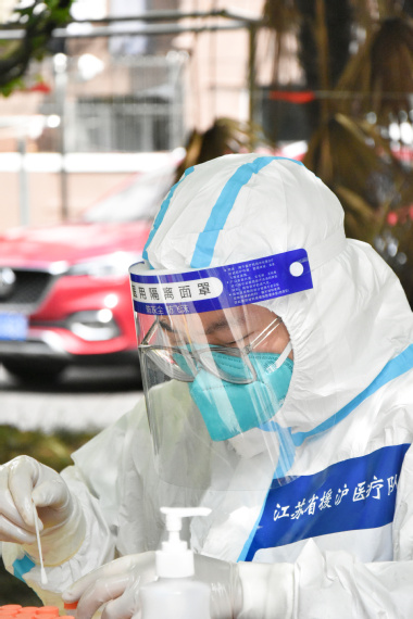 当此次上海吹响紧急支援号角时,作为一名党员,我毫不犹豫再次报名。作为一名90后,在以前非典的时候是大家守护了我们,这次新冠疫情,我们也应该挺身而出,去守护大家,而且我有多次支援的经验和在武汉重症病区工作的经历,可以将宝贵的经验跟队友分享,减少工作上的一些差错。在这次上海的抗疫工作中,我们以最快的速度圆满完成了核酸采样的工作。
